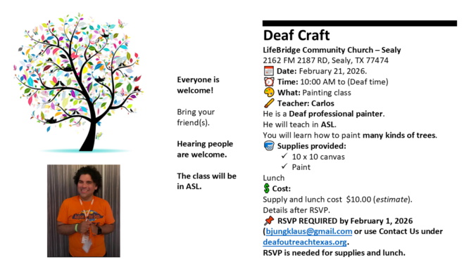 Join us for community building, ASL, fellowship, and outreach