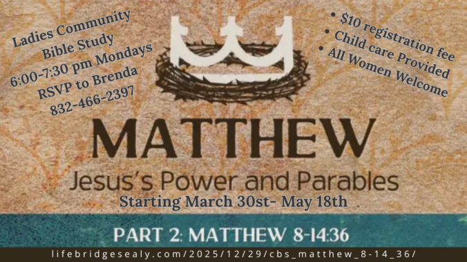 Please join us! (You do not have to have participated in the CBS Matthew Study as this is just a bonus series in between sessions of Matthew.)