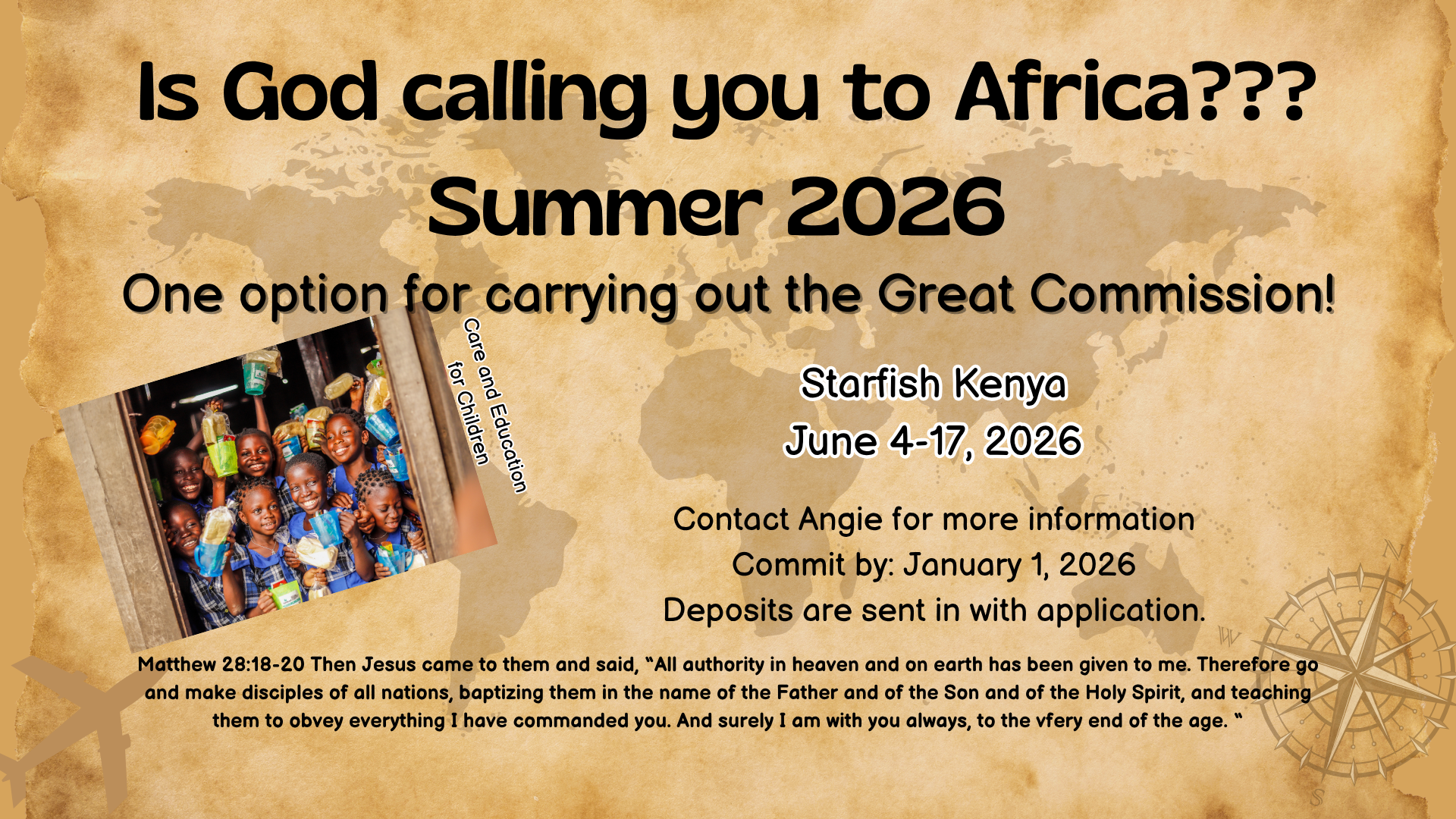 $800 -$1,600 to Trinity Ablaze in Kenya covers all accommodations and transportation. Also covers Breakfast and Dinner. Lunch is TBD by the location that you are stationed.